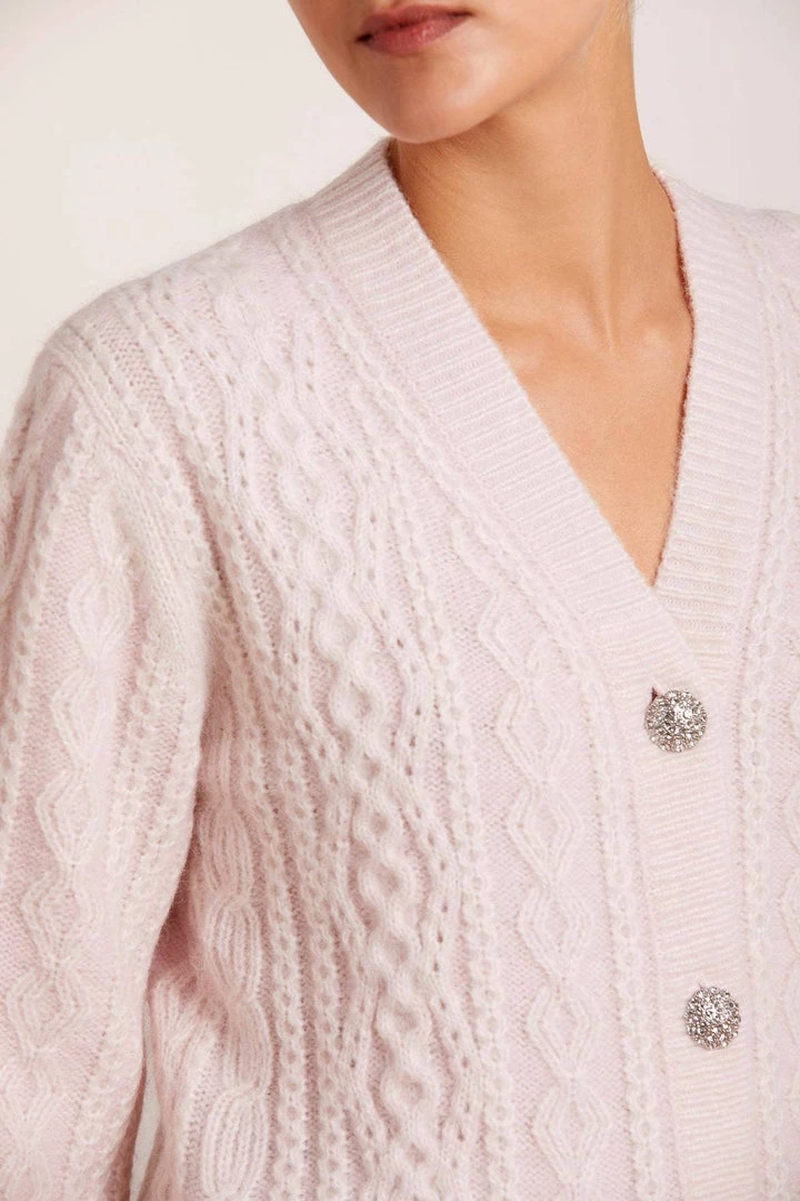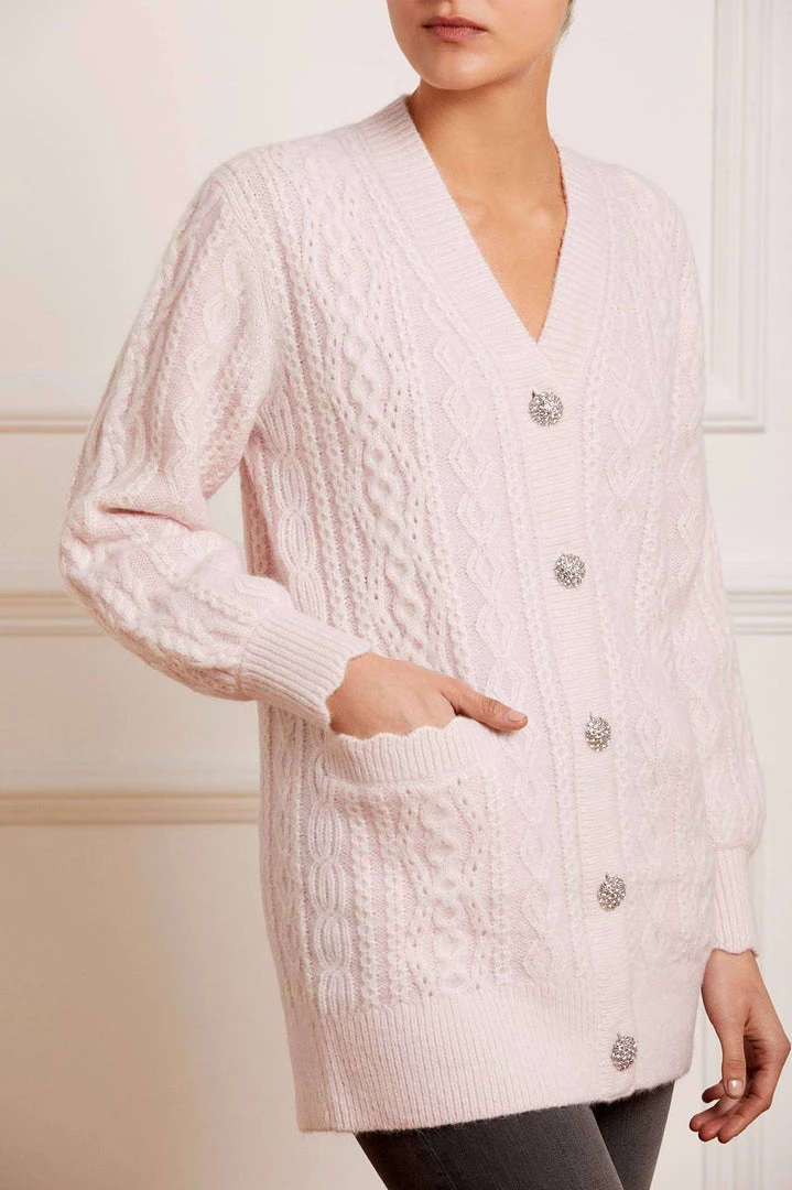 Needle & Thread Holding LTD Cable Jewelled Button Longline Cardigan