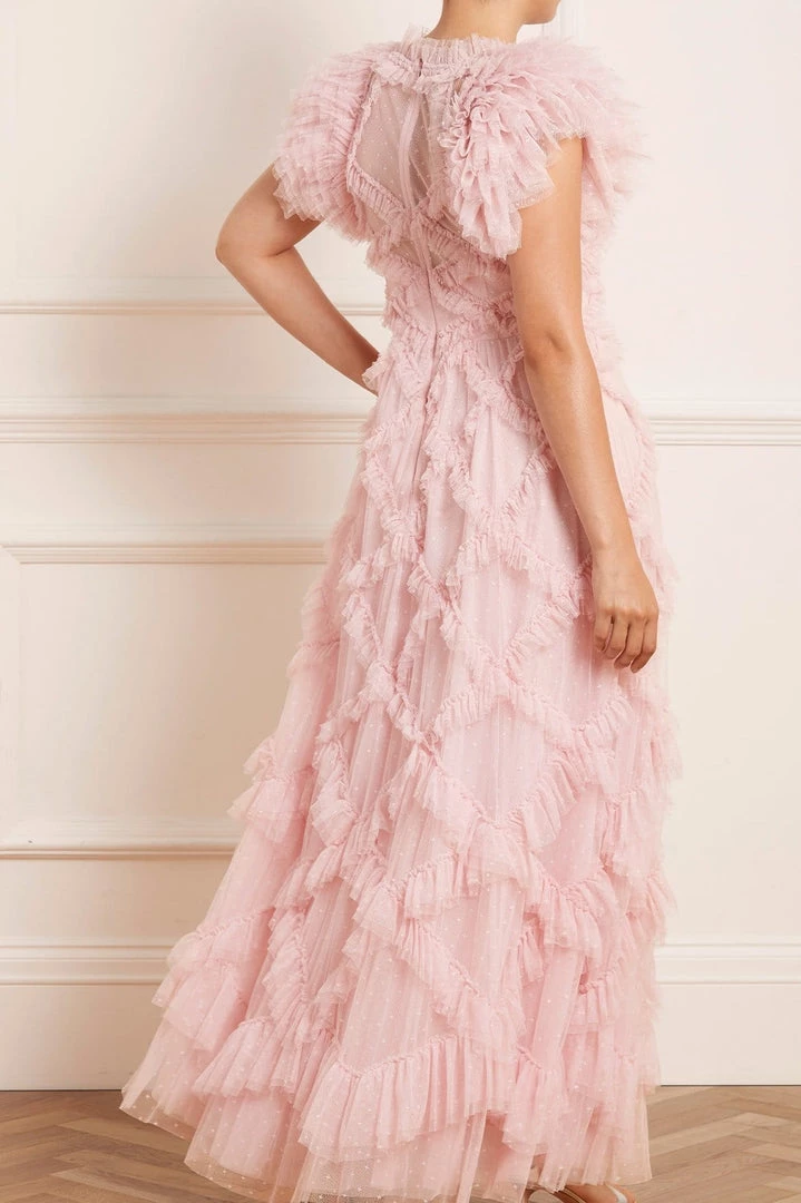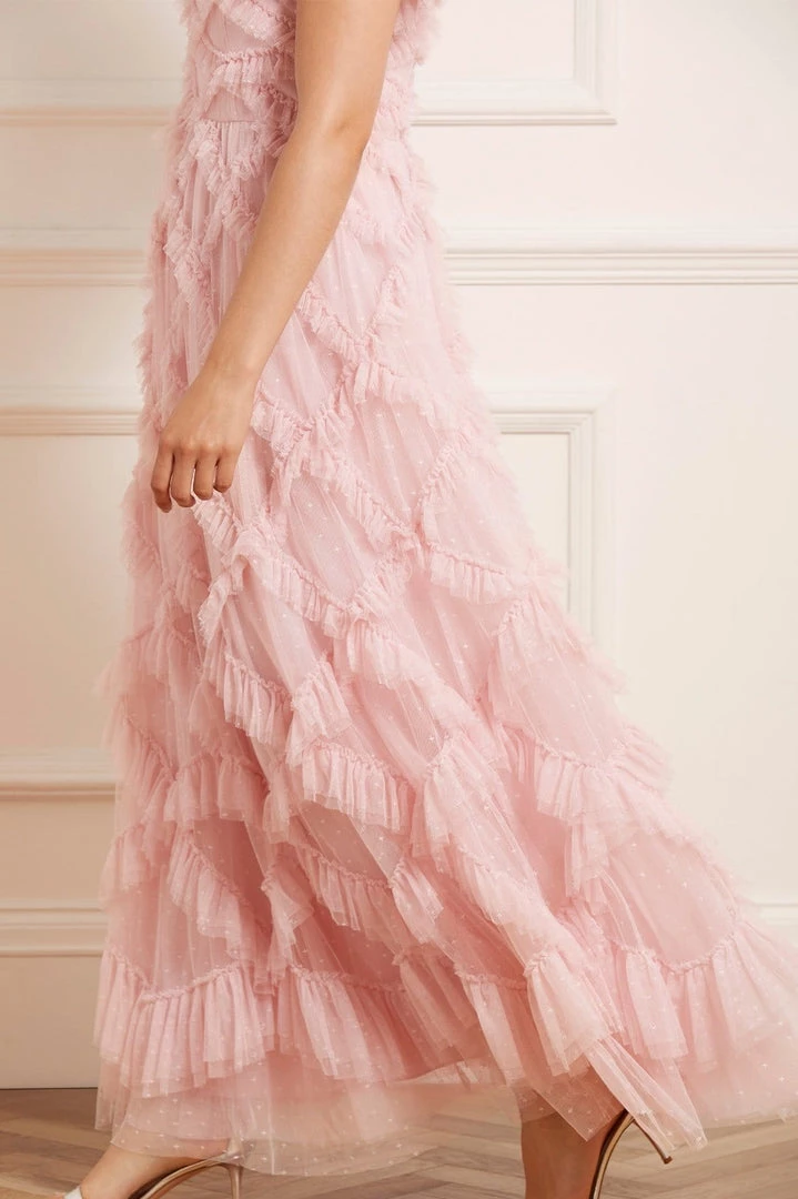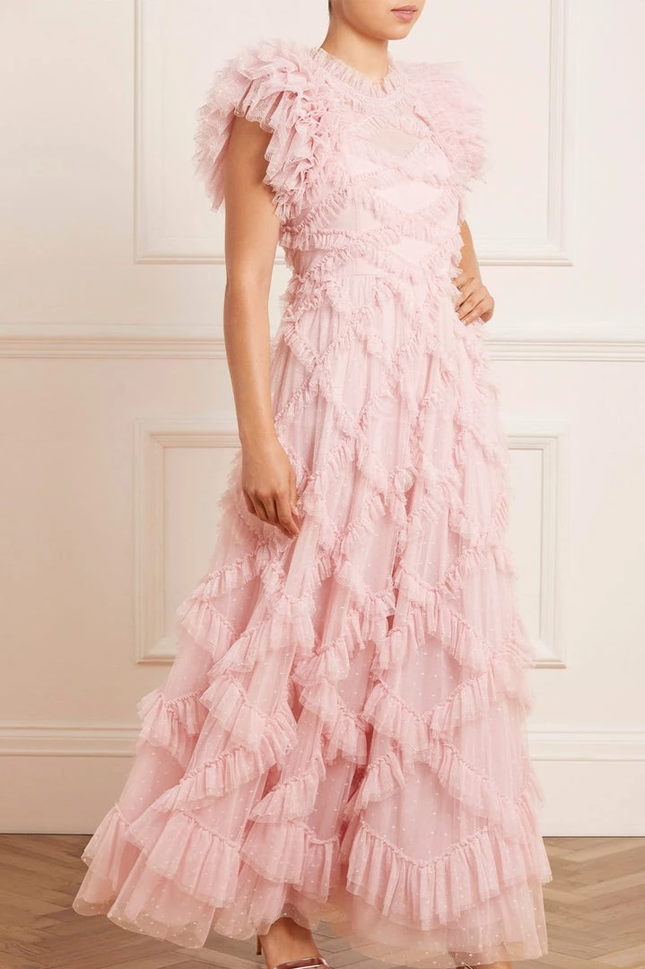 NEEDLE & THREAD EXCLUSIVE. The Genevieve Rose Gown in Ballerina Pink. This statement gown is inspired by 1930s Hollywood glamour. Beautifully designed with diamond tulle details and trims. Crafted with multiple layers of ruffled, frothy tulle sculpted for dramatic effect. Make the ultimate style statement this season.