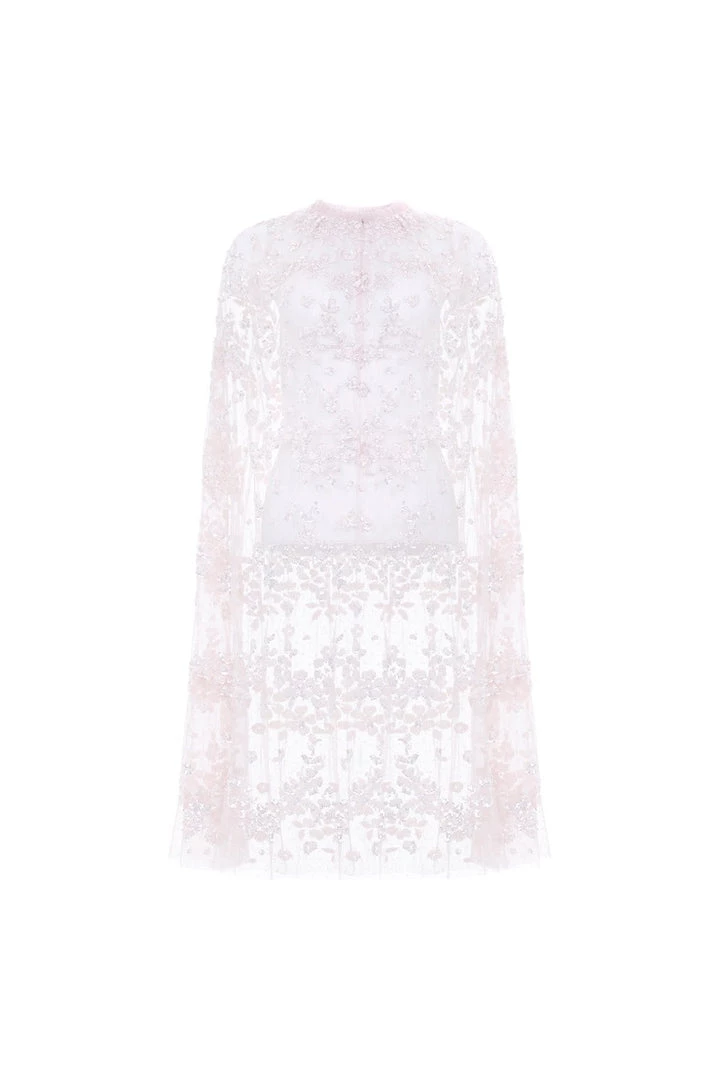 The Margot Midaxi Cape in Petal Pink. This cape is adorned with a floral, sequin artwork creating an all over shimmer effect. Crafted with a hook fastening at the neckline for effortless styling. Designed to layer over the Margot Cami Ankle Gown for a statement look. Make this cape your new go-to piece.